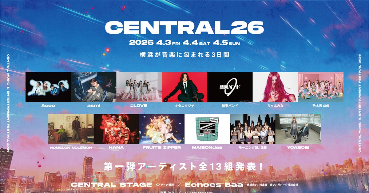 CENTRAL MUSIC & ENTERTAINMENT FESTIVAL 2026 4/3(金)・4/5(日) 「CENTRAL STAGE」Kアリーナ横浜公演.。